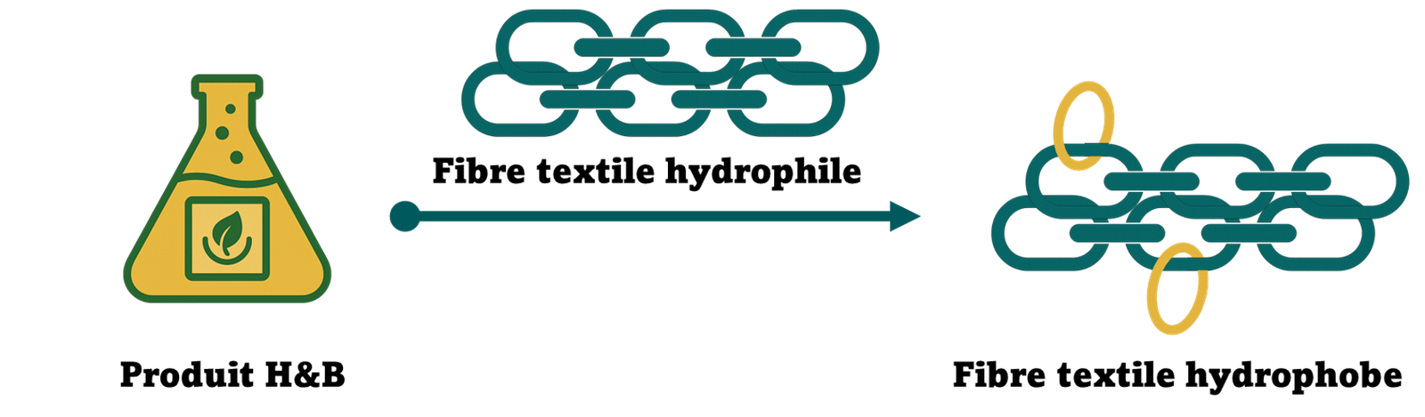 Chez H&B Materials, nous développons une technologie innovante capable de modifier la fibre textile à l’échelle moléculaire grâce à des procédés de chimie douce.